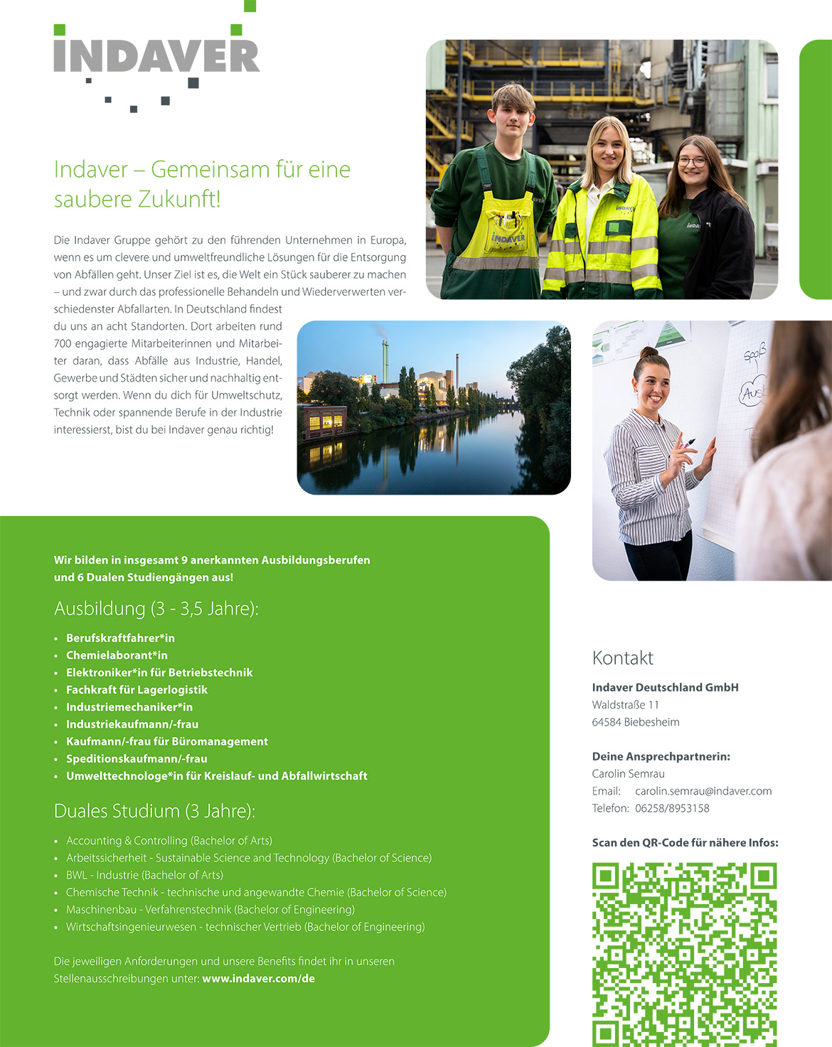 Ausbildungsplakat: Indaver Group – Standort Pfungstadt