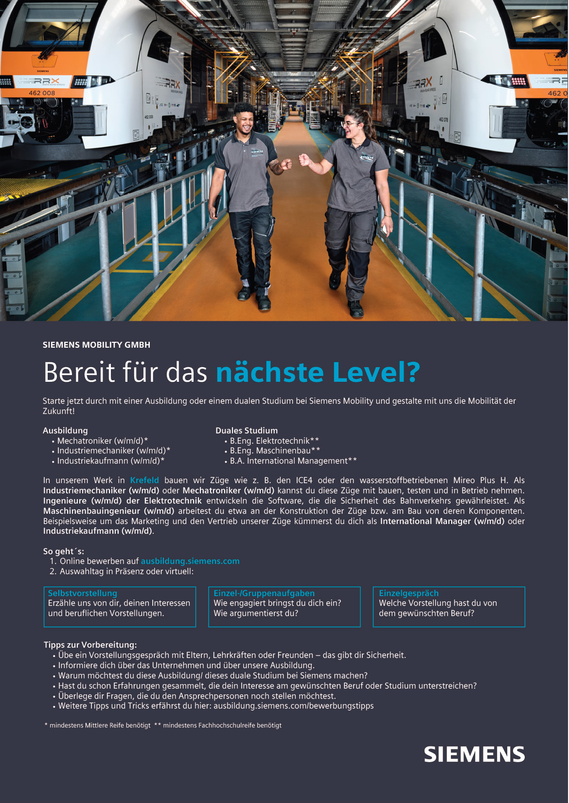 Ausbildungsplakat: Siemens Mobility GmbH